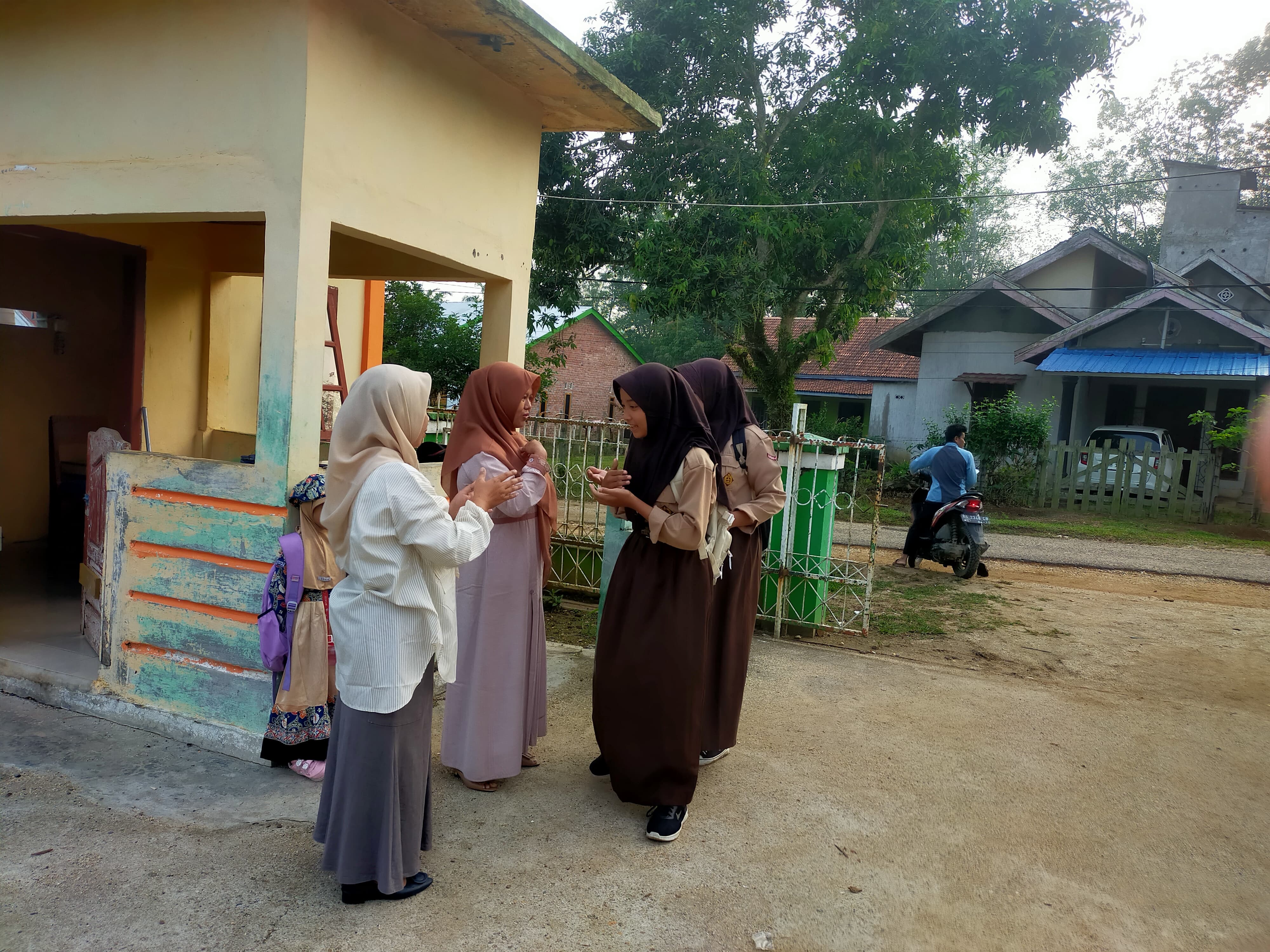 Tim guru yang bertugas pada hari ini terdiri dari Ibu Sasmita Hasdiana, S. Pd. I, Ibu Rusyda Hikmah, S. Pd. I, Ibu Uli Yatus Sholihan, M. Pd., dan Pak Efriyanto. Mereka adalah bagian dari tim piket harian yang secara bergiliran menyambut kedatangan siswa di gerbang sekolah. Tak hanya sekadar formalitas, kegiatan ini dilakukan untuk memberikan rasa nyaman dan semangat kepada siswa sebelum memulai aktivitas belajar.