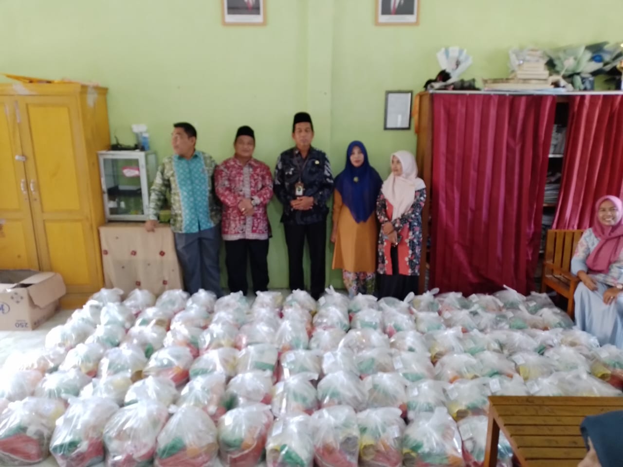 Penyerahan paket sembako diawali dengan prosesi simbolis yang dilakukan oleh Kepala Madrasah, Bapak Slamet, S.Ag., M.Pd.I. Beliau didampingi oleh jajaran pimpinan sekolah, termasuk Wakil Kepala Bidang Humas, Kaur Tata Usaha, serta anggota Tim UPZ.