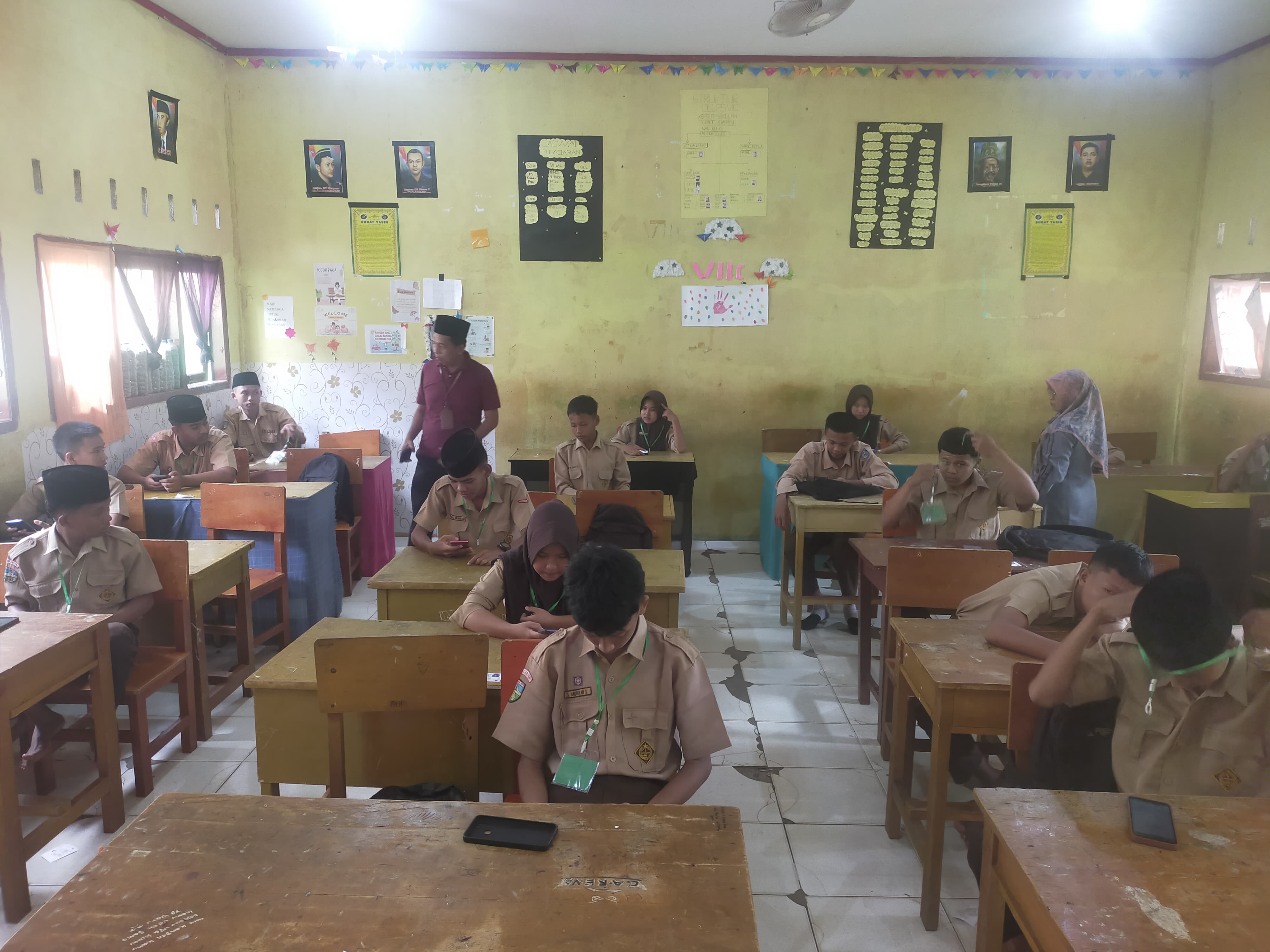 Tebo Ilir (MTsN. 6 Tebo) Pada hari terakhir pelaksanaan Ujian Madrasah Berbasis Android, Kepala Madrasah MTsN 6 Tebo, Bapak Slamet, S. Ag., M. Pd. I, melakukan peninjauan langsung ke seluruh ruang ujian untuk memastikan jalannya ujian berjalan lancar dan tertib. Dalam kegiatan tersebut, beliau didampingi oleh Kepala Urusan Tata Usaha sekaligus Ketua Panitia Ujian, Ibu Ermila, S. Ag.