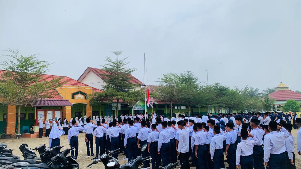 Suasana halaman madrasah tampak semarak dengan hadirnya para siswa dan guru yang antusias mengikuti upacara. Terlihat pula para orang tua, terutama dari siswa baru, turut mengantarkan anak-anak mereka di hari pertama sekolah. Kehadiran mereka menjadi wujud dukungan dan perhatian terhadap pendidikan anak.
