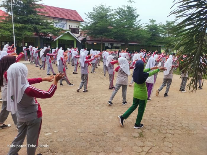 Tebo Ilir (MTsN. 6 Tebo) 20 September 2025 – MTsN 6 Tebo kembali menggelar kegiatan senam rutin yang dilaksanakan setiap Sabtu pagi sebagai bagian dari upaya menjaga kebugaran dan meningkatkan semangat seluruh warga madrasah. Pagi ini, Sabtu (20/09), suasana halaman madrasah tampak semarak dengan gerakan senam yang penuh antusias dari siswa, guru, dan tenaga kependidikan.