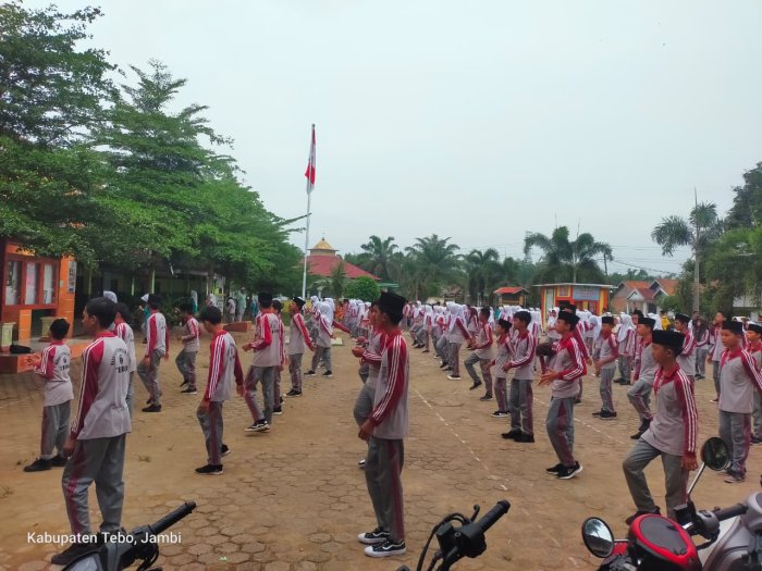 Sejak sebelum bel tanda berkumpul untuk senam berkumandang, para siswa dan siswi sudah terlihat tertib mengatur barisan di halaman madrasah. Mereka tampak bersemangat dan rapi dalam menunggu dimulainya kegiatan. Tidak hanya peserta didik, para pendidik dan tenaga kependidikan MTsN 6 Tebo juga turut ambil bagian dengan membentuk barisan di belakang siswa, menunjukkan kekompakan dan kebersamaan dalam menjaga kesehatan serta semangat kebugaran bersama.