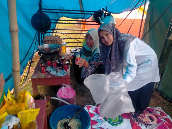 Selain Ibu Eni, suasana dapur kontingen juga ramai dengan kehadiran guru-guru senior MTsN 6 Tebo yang tak kalah semangat membantu. Di antaranya adalah Ibu Nanik, S. Pd. I, sosok pendidik yang telah mendedikasikan pengabdiannya lebih dari 25 tahun di madrasah tersebut. Dengan ketelatenan dan kesabaran, beliau membantu menyiapkan hidangan untuk peserta yang baru kembali dari kegiatan lapangan.